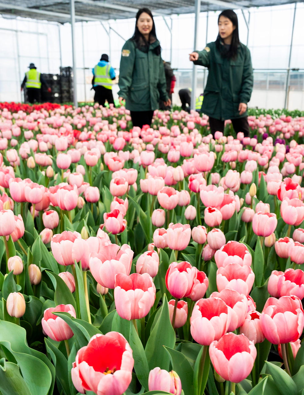 튤립축제 개막을 열흘 앞둔 10일 오전, 에버랜드 인근 식물 하우스에서 직원들이 축제 현장을 화사하게 수놓을 튤립들의 상태를 살펴보며 봄맞이 준비에 한창이다. 삼성물산 리조트부문 에버랜드는 오는 20일부터 4월 말까지 튤립, 수선화, 무스카리 등 100여 종 120만 송이 봄꽃이 만발하는 튤립축제를 개최한다.
